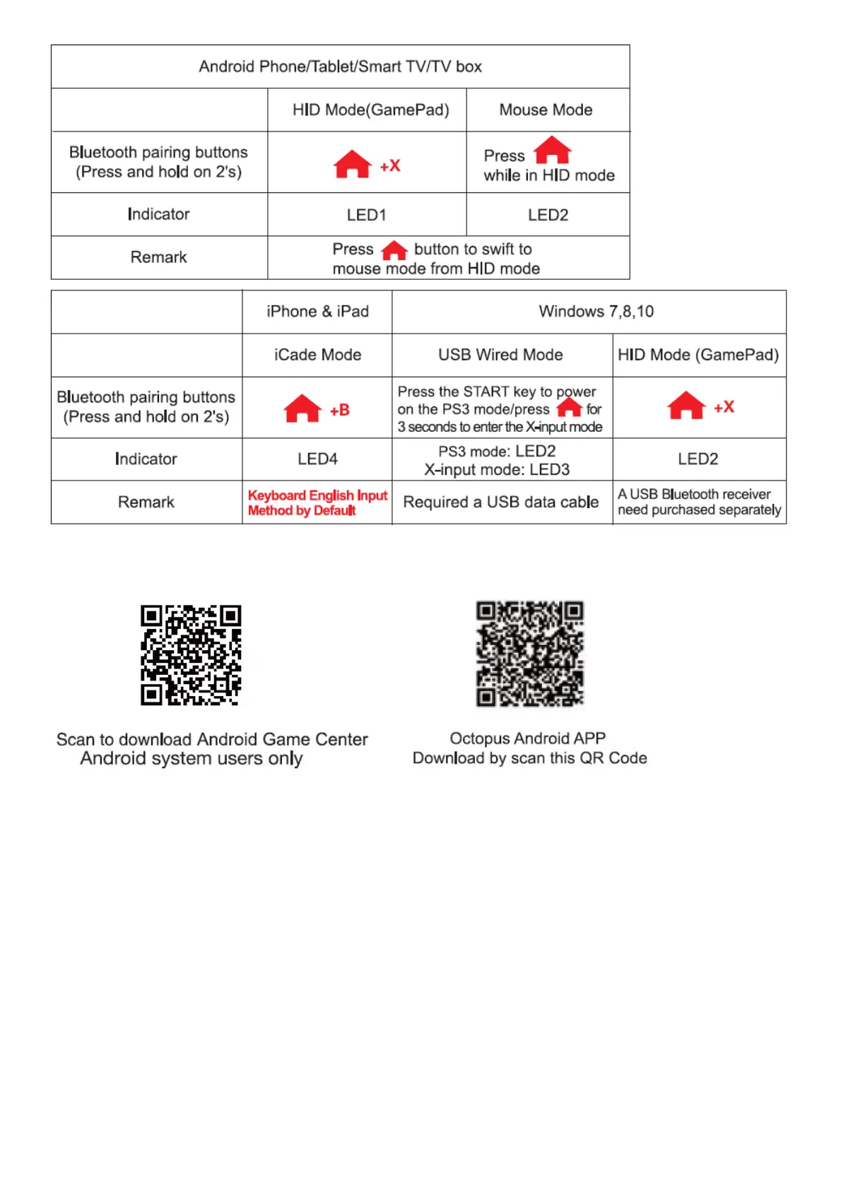 ‘Majority of the games in Android system supports HID mode. (When using it in a PC, the usage methods are the