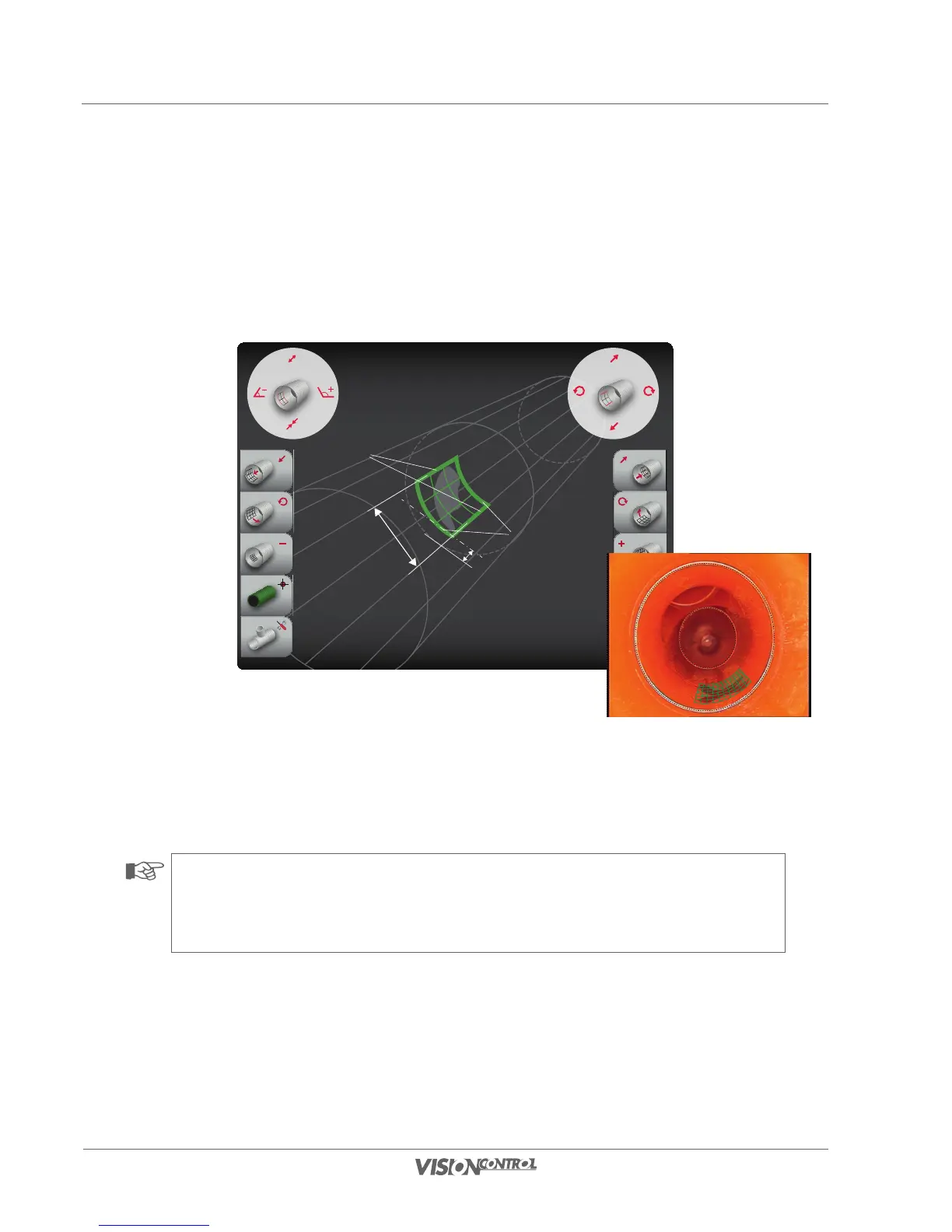 • Use the left joystick (horizontal deflection) to determine measuring lines 2, i.e. the length of the grid unit on the pipe circumference.