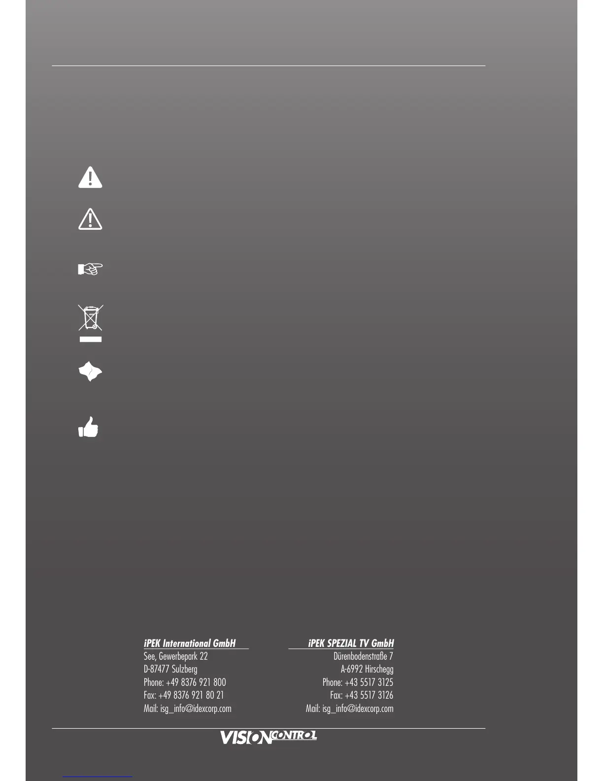 and how to operate it properly with the aid of the VISIONREPORT software. iPEK took particular care during the development