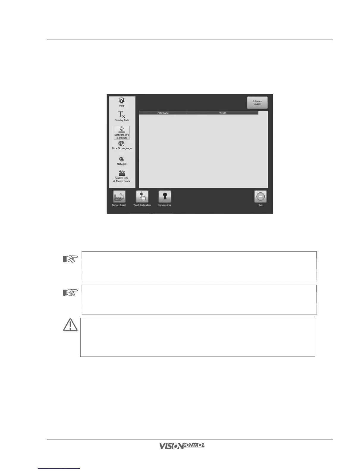 • Press the button SOFTWARE UPDATE in order to start the update process.