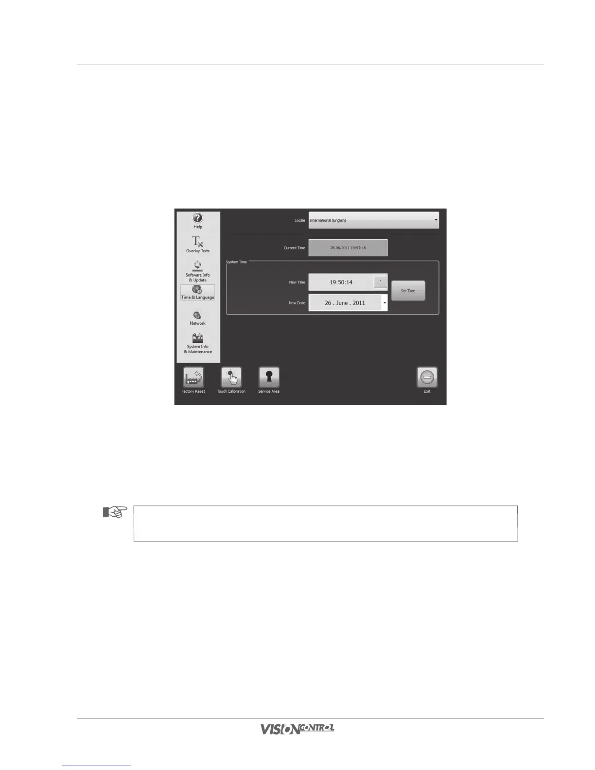 Set the locale, the system time, and the system date in the “Time & Language” settings menu. The locale is already preselected when the control