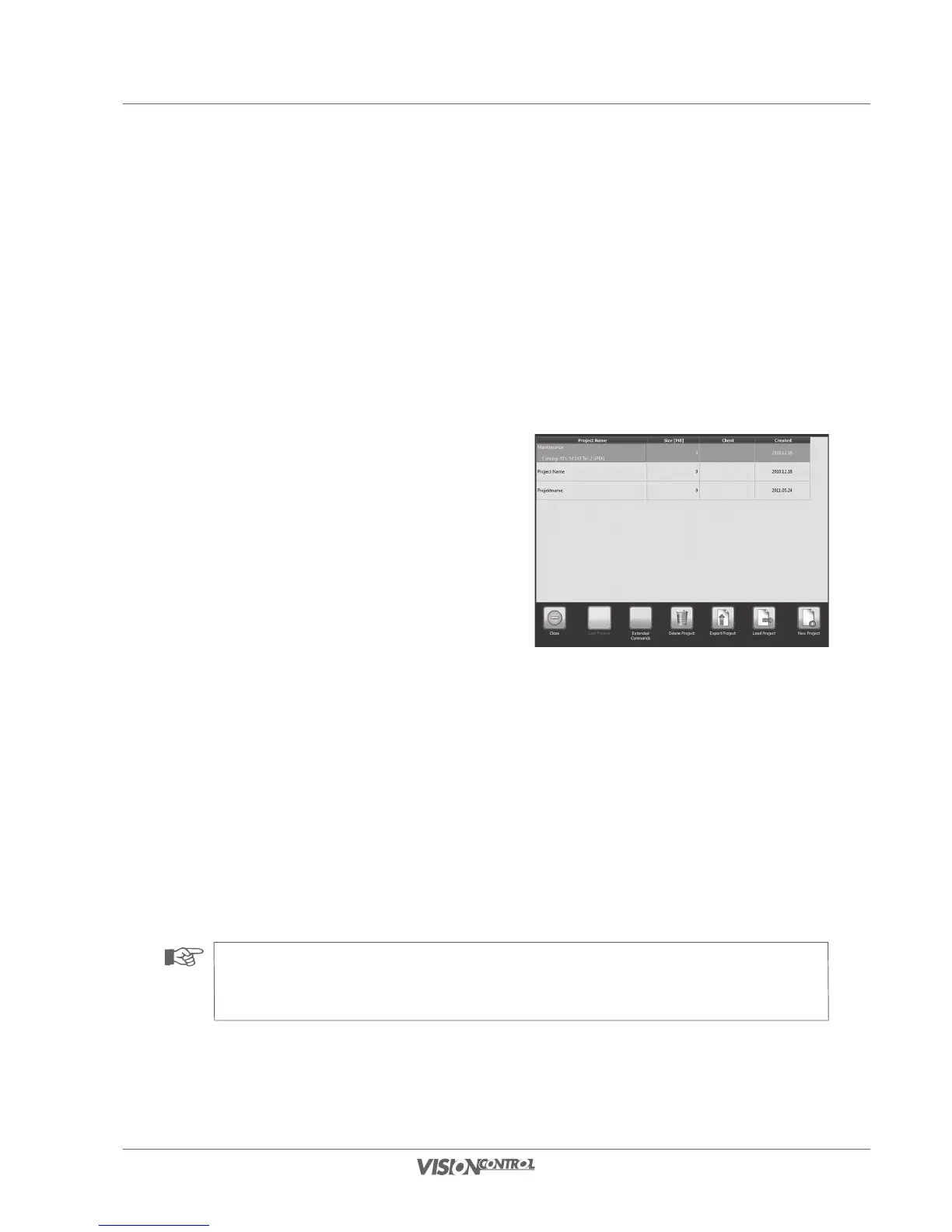 In the Projects Overview area a list of the projects on your VISIONCONTROL is displayed. Simple as well as general projects are listed here.