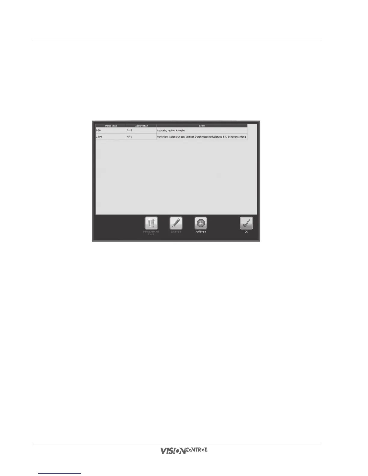 an overview of previously recorded events. In addition you can delete events, correct errors and add events after the inspection.
