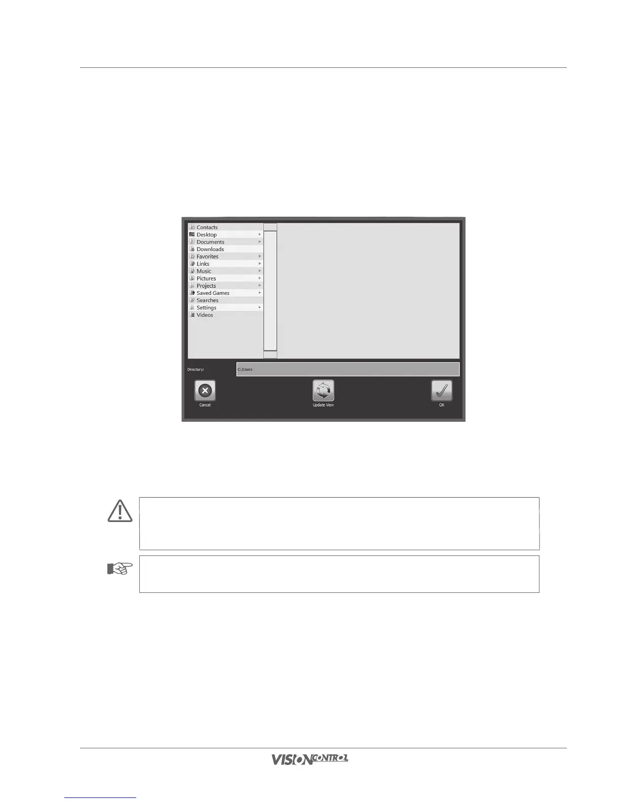 On your VISIONCONTROL control panel you can export your inspection data, load updates from remote directories, or save video and image