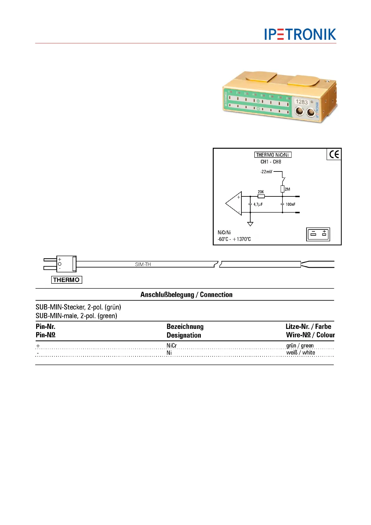 8 Thermocouple measurement inputs type K (NiCr/NiAl)