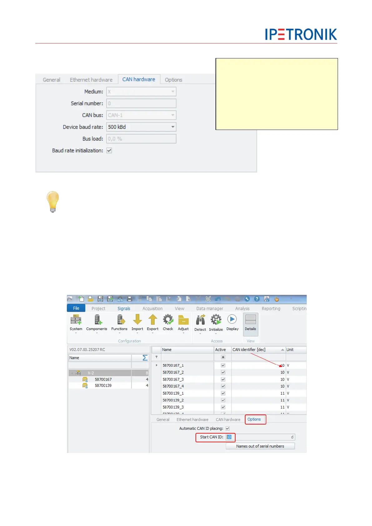 Options – Define start CAN ID