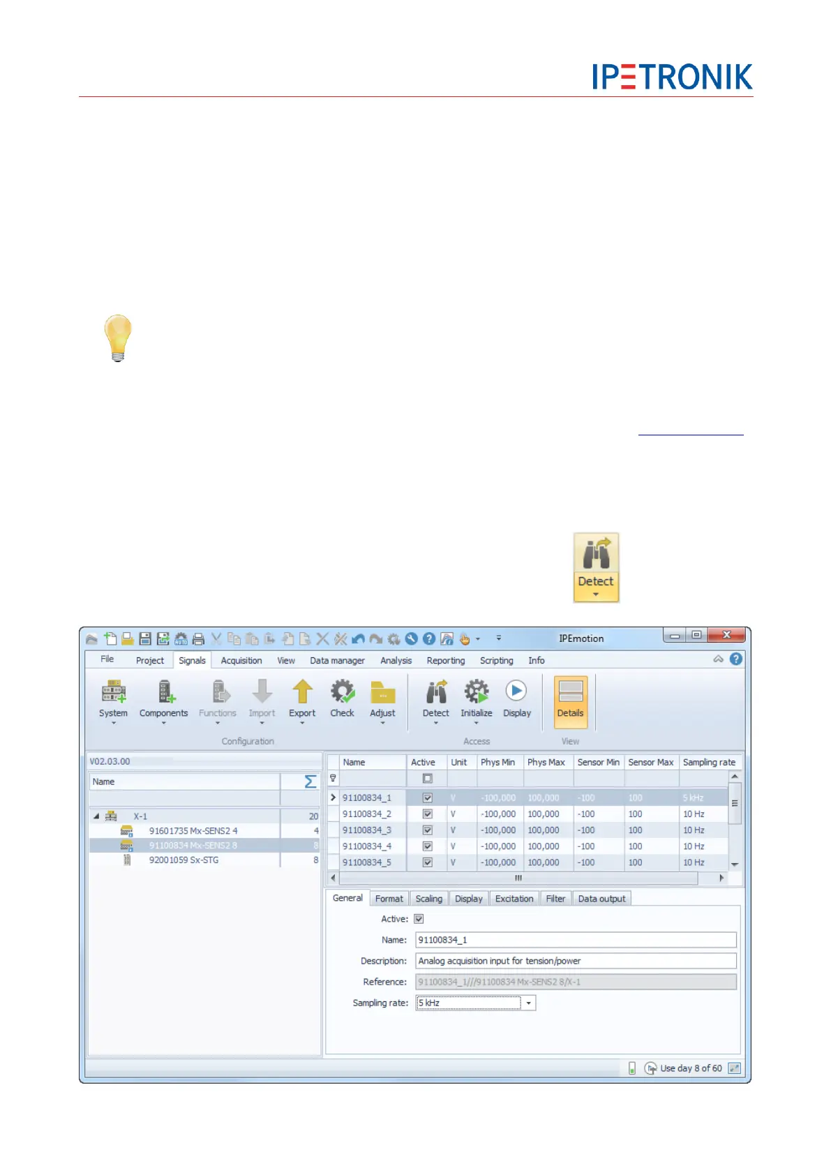Click Detect from the signals icon bar to identify connected modules.