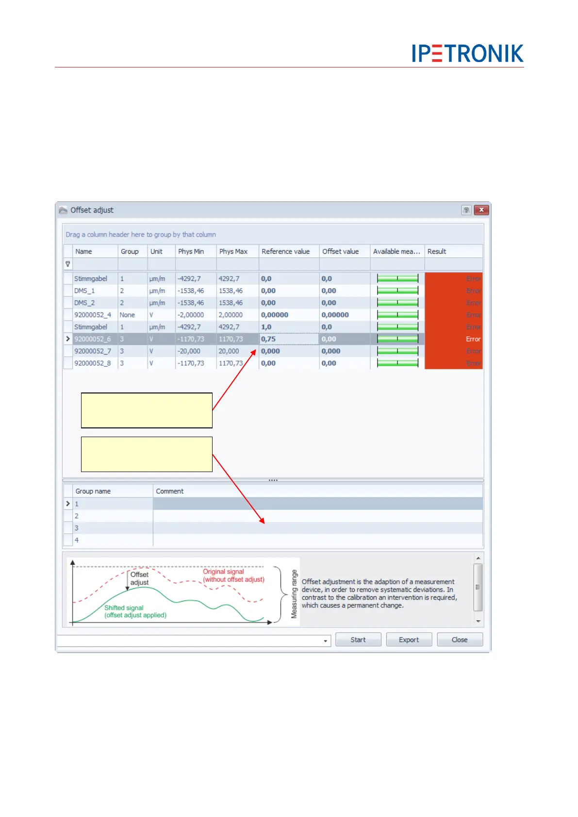 value or target value can be defined by the user. As soon as the adjustment has finished, offset values,