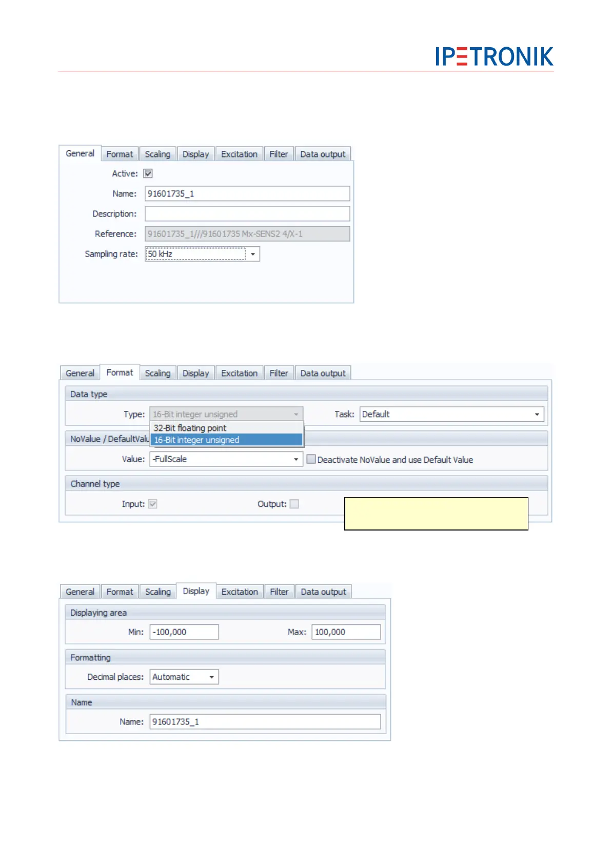 IPETRONIK IPEmotion PlugIn IPETRONIK-X - Channel Settings; Common Settings