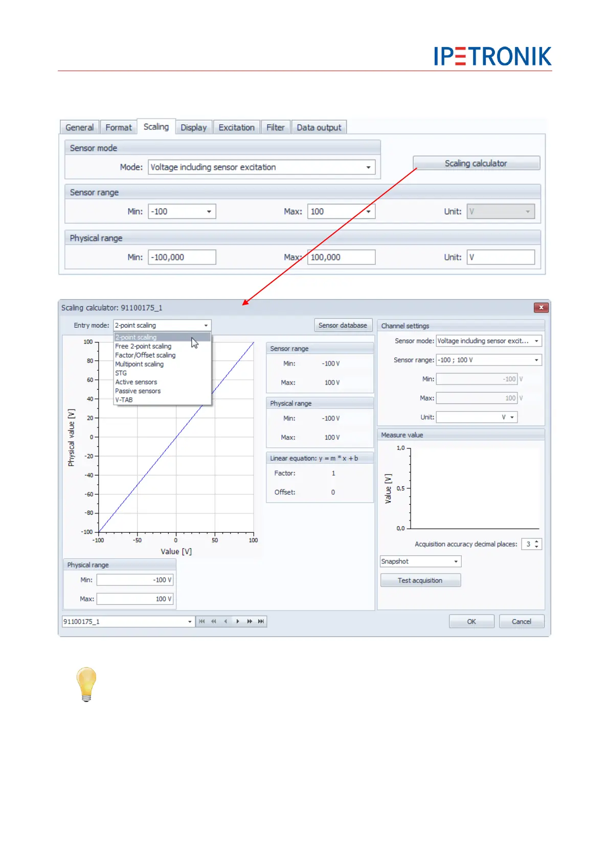With the scaling calculator, you can also perform a 2-point scaling by defining real signals.