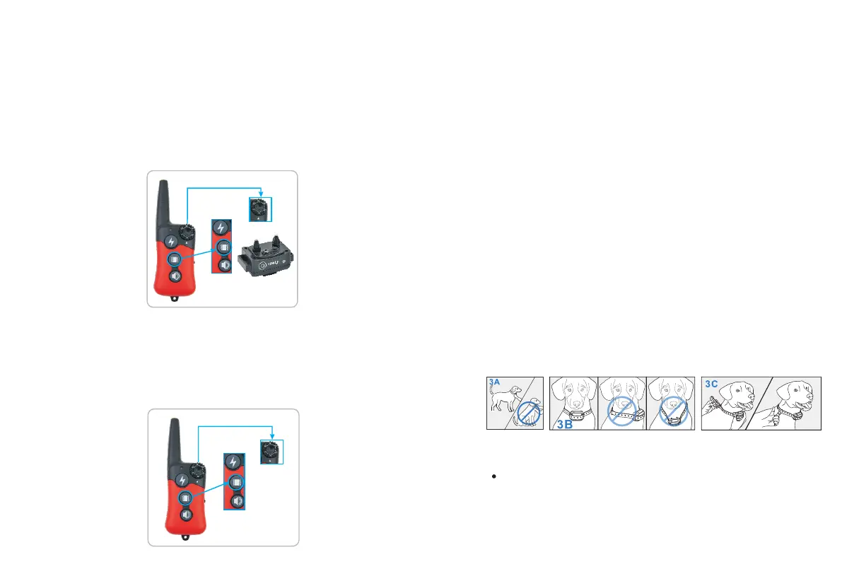 of your dog's neck, making direct contact with the dog's skin. If direct