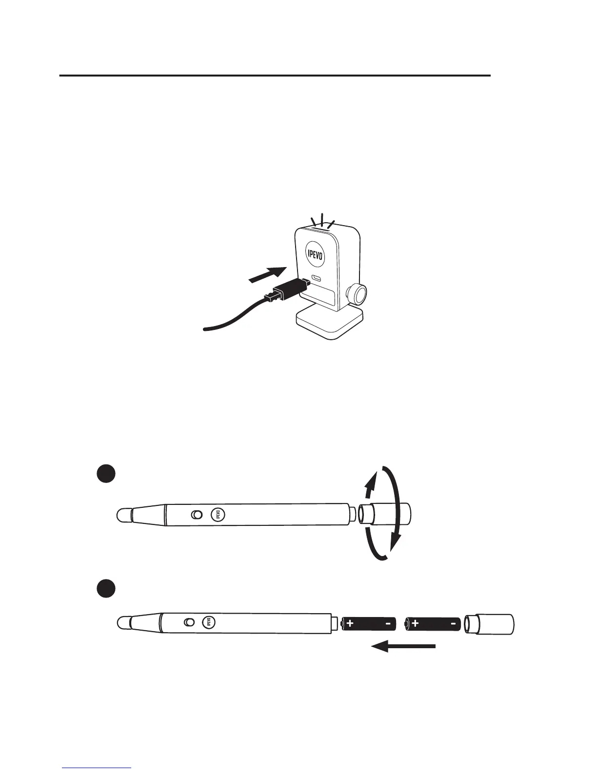 Remove the battery cover from the Interactive Pen and insert 2 AAA batteries.