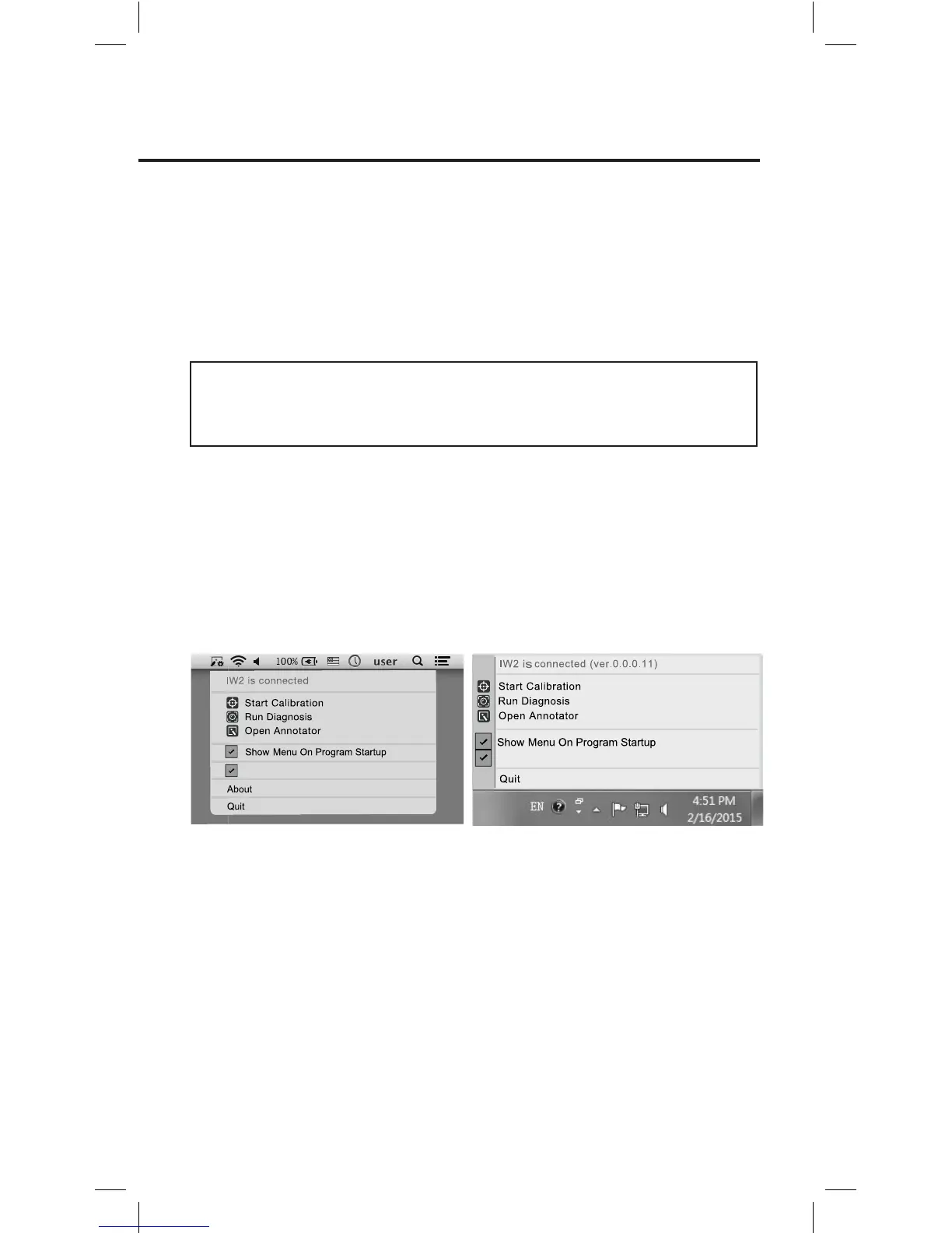 IW2 must be calibrated before use to ensure accurate operation. This