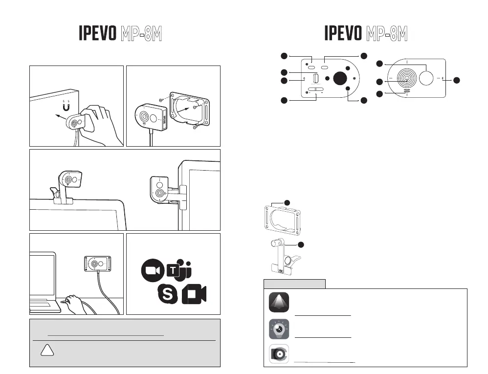11. Camera clamp: Attach the MP-8M to flat objects and