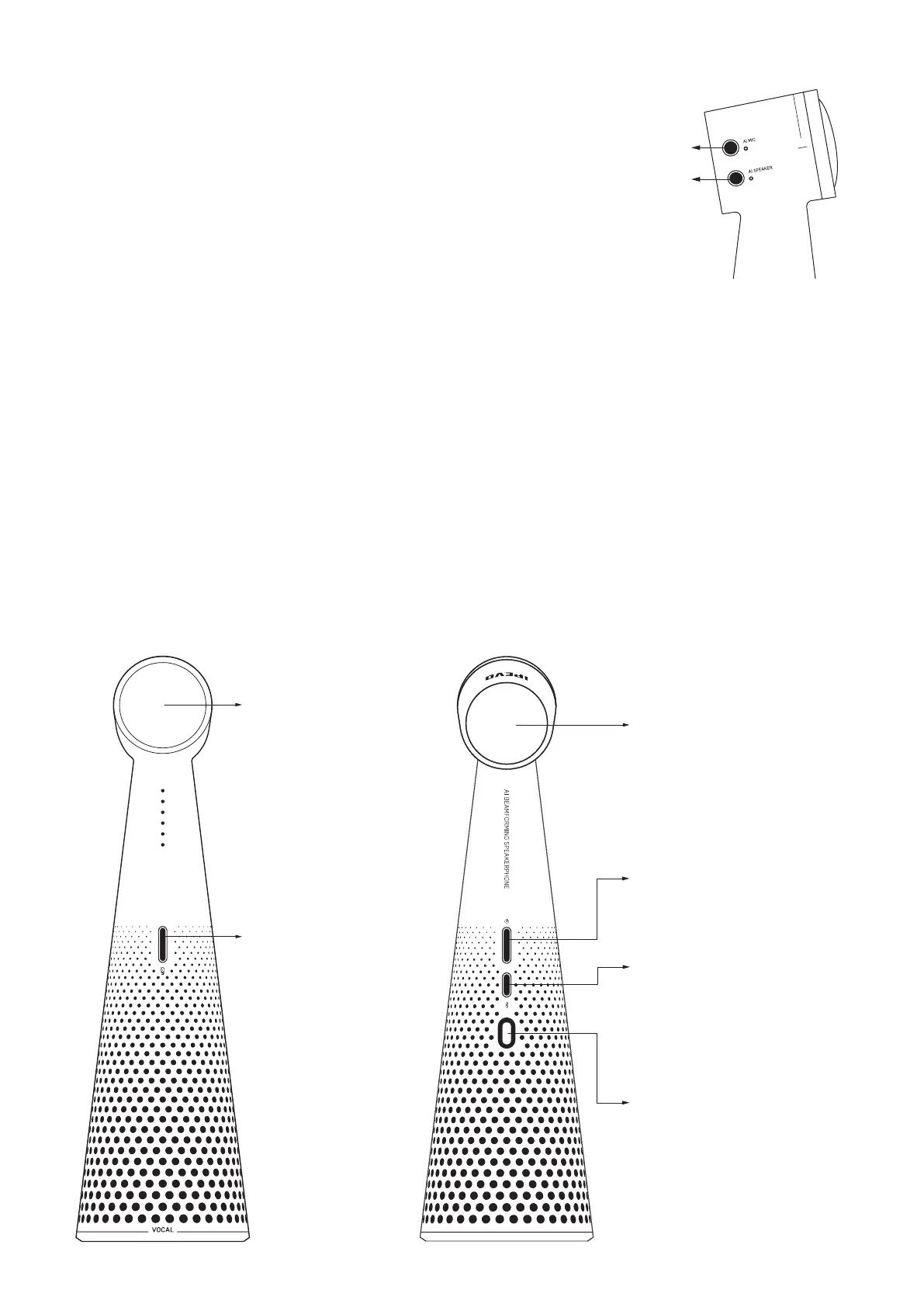 A shining yellow light (bottom LED) indicates that VOCAL is fully charged.