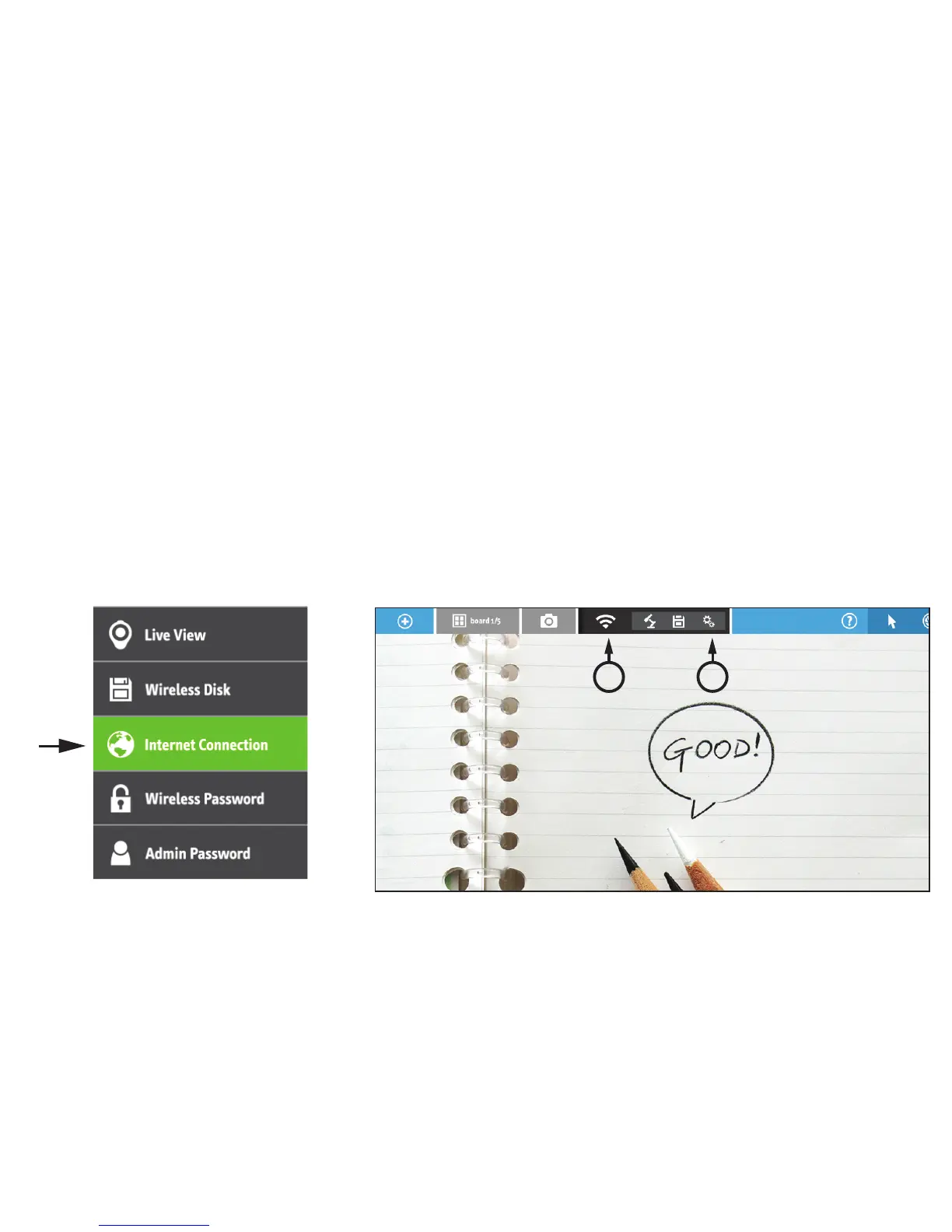 2. Tap the Internet Connection icon on the WS-01 Settings Page. (To use the IPEVO Whiteboard App to access