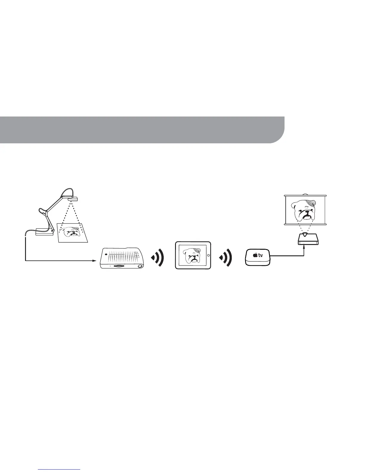 You can use Apple TV Airplay to wirelessly project live action from the IPEVO Whiteboard