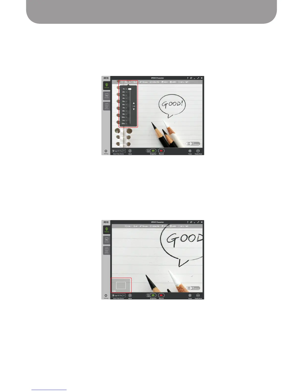 In the Camera mode of the Presenter software, the Zoom tab allows you to digitally “zoom in” to your