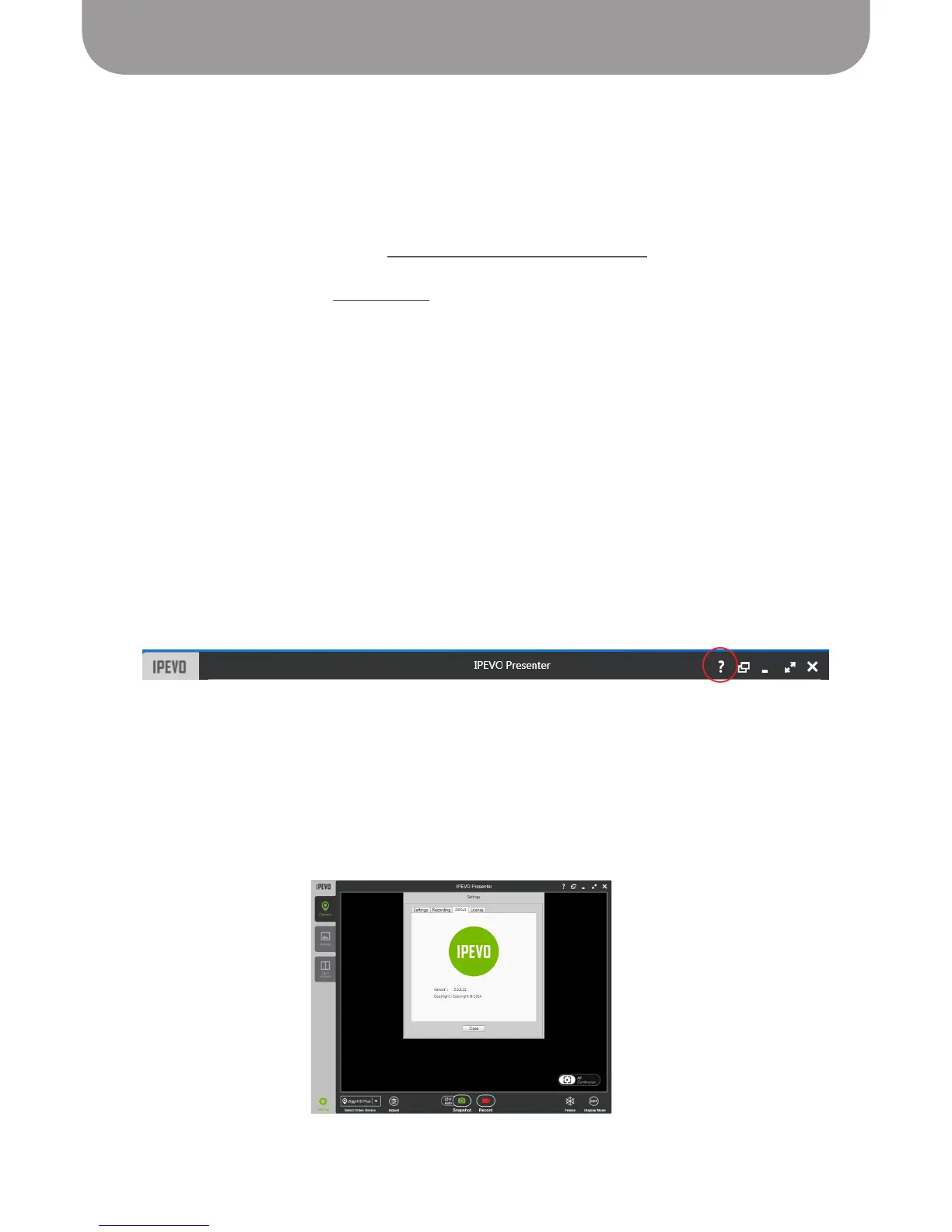 • Help Link – Help, within the Presenter software, will bring you to IPEVO's website for the latest version