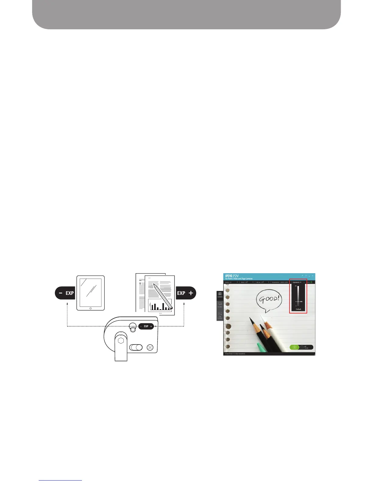 change EXP, or drag the pointer to a value. Hitting “Default” will bring the exposure back to the