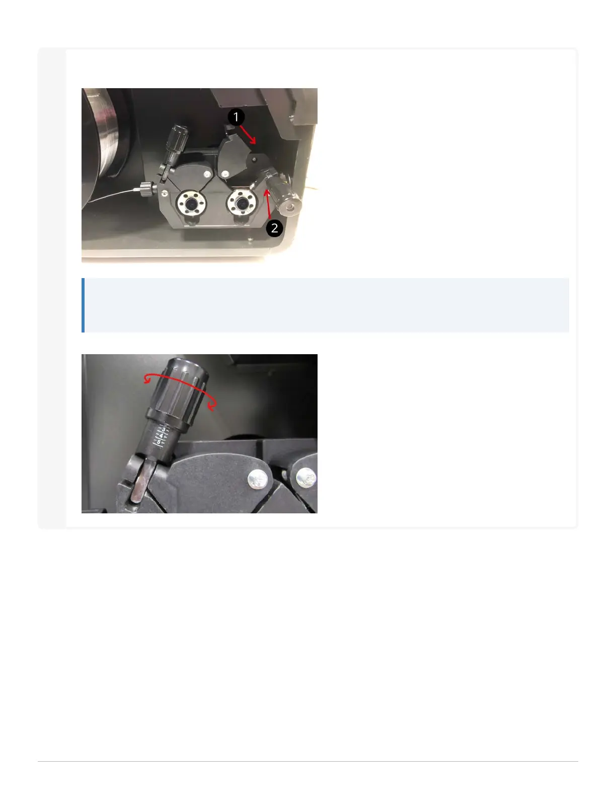 Secure the wire by pushing the drive roll covers down (1) and pushing the knobs back up into place (2).
