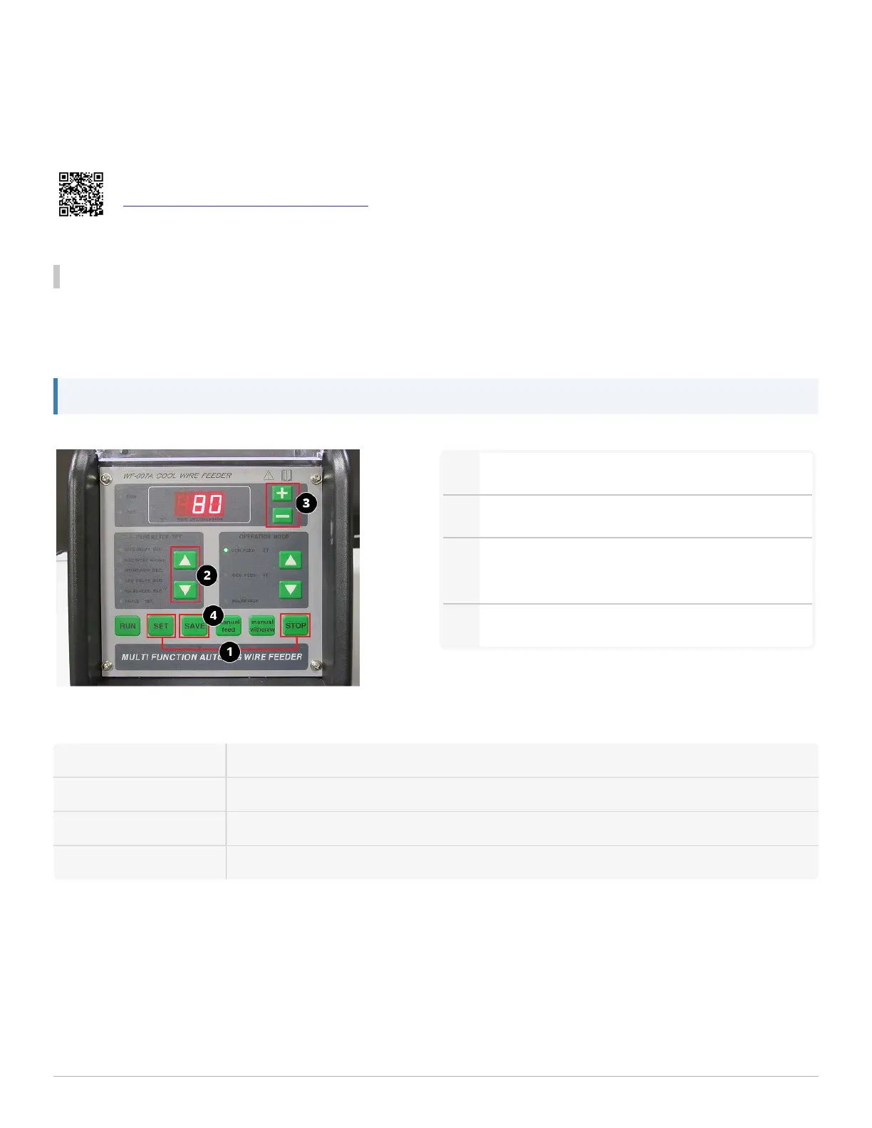 Note: The wire feed rate units are centimeter per minute. The default feed speed for this wire feeder is 80 cm/min.