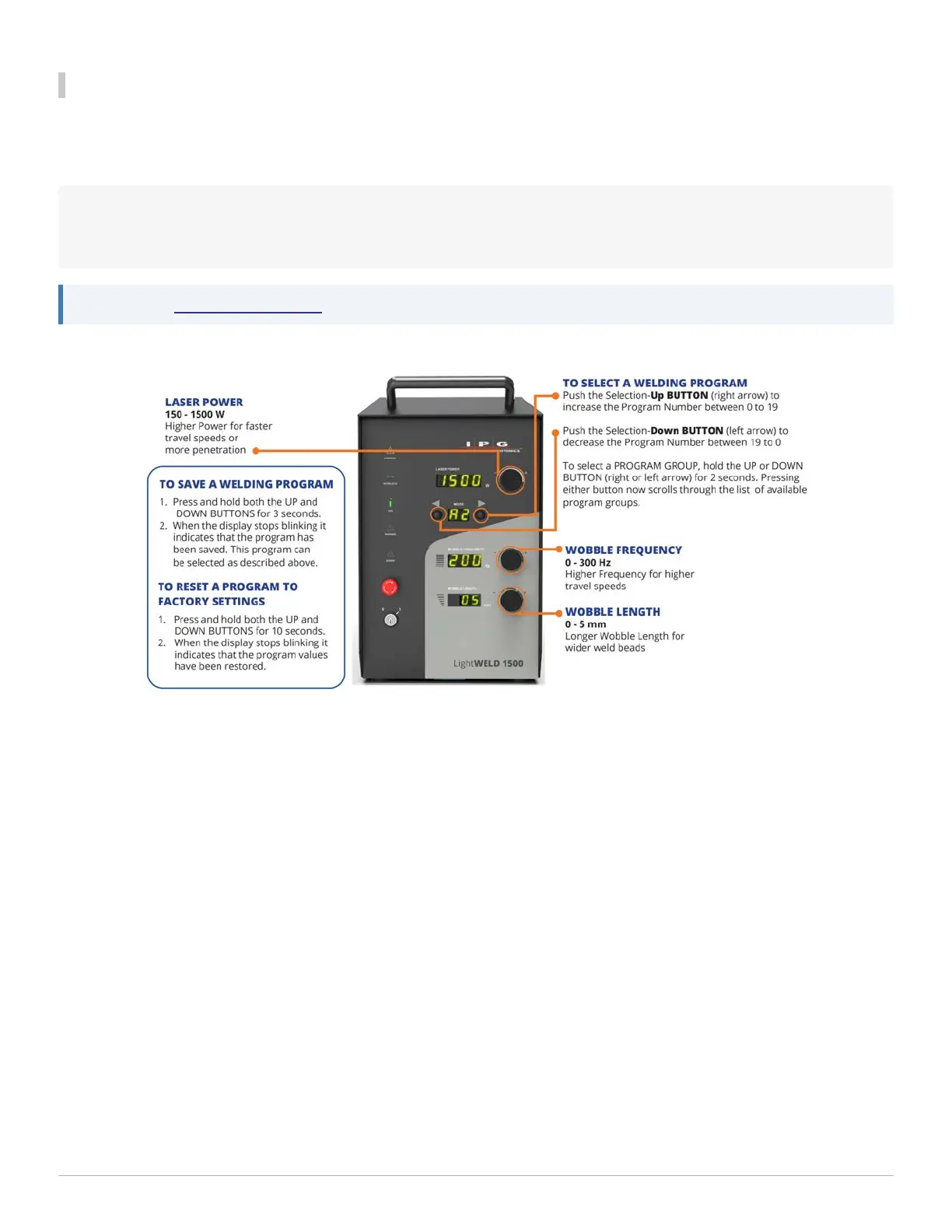 Note: See the LightWELDwebpage for additional documentation and videos about LightWELDsettings.