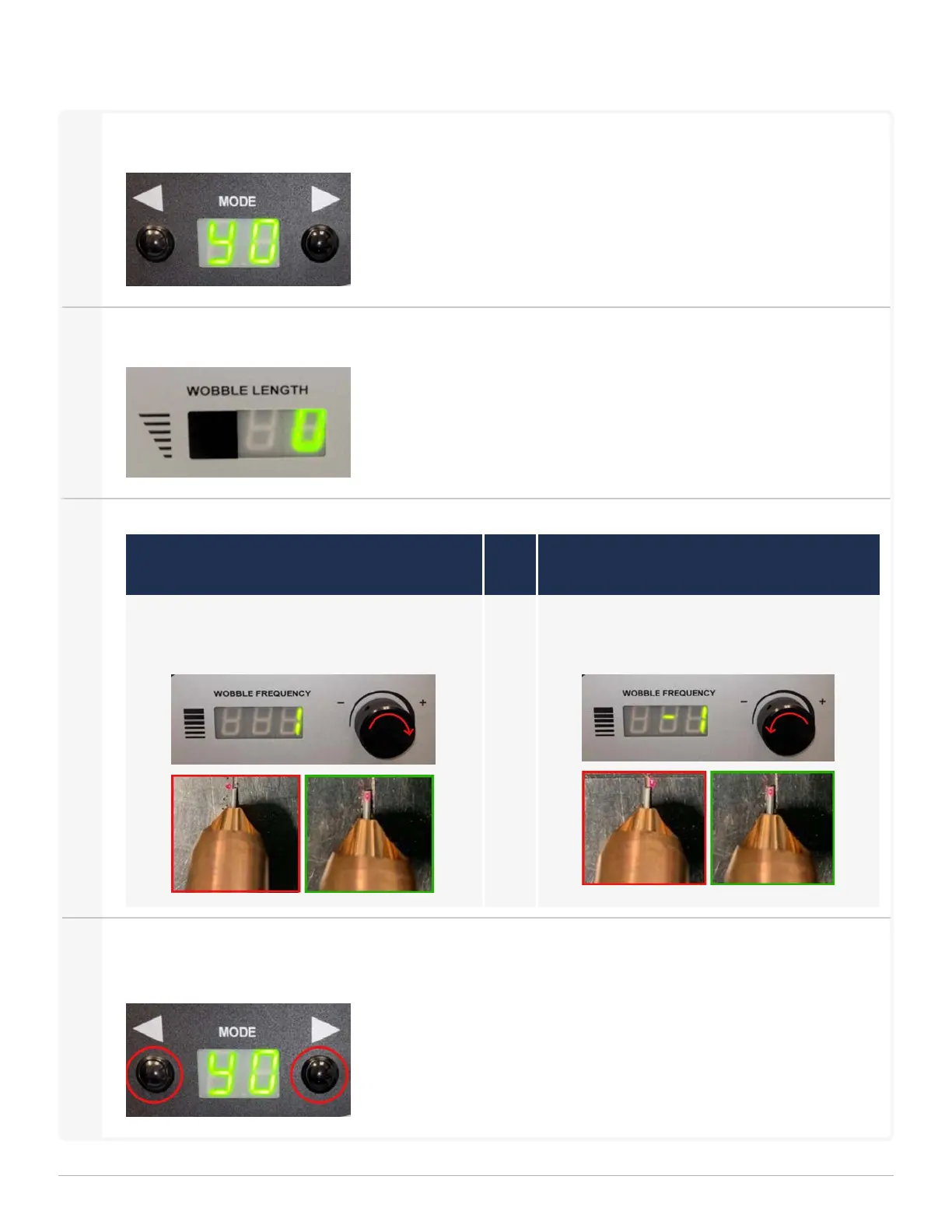 Use the Wobble Frequency Knob to adjust the beam until it is centered on the wire.