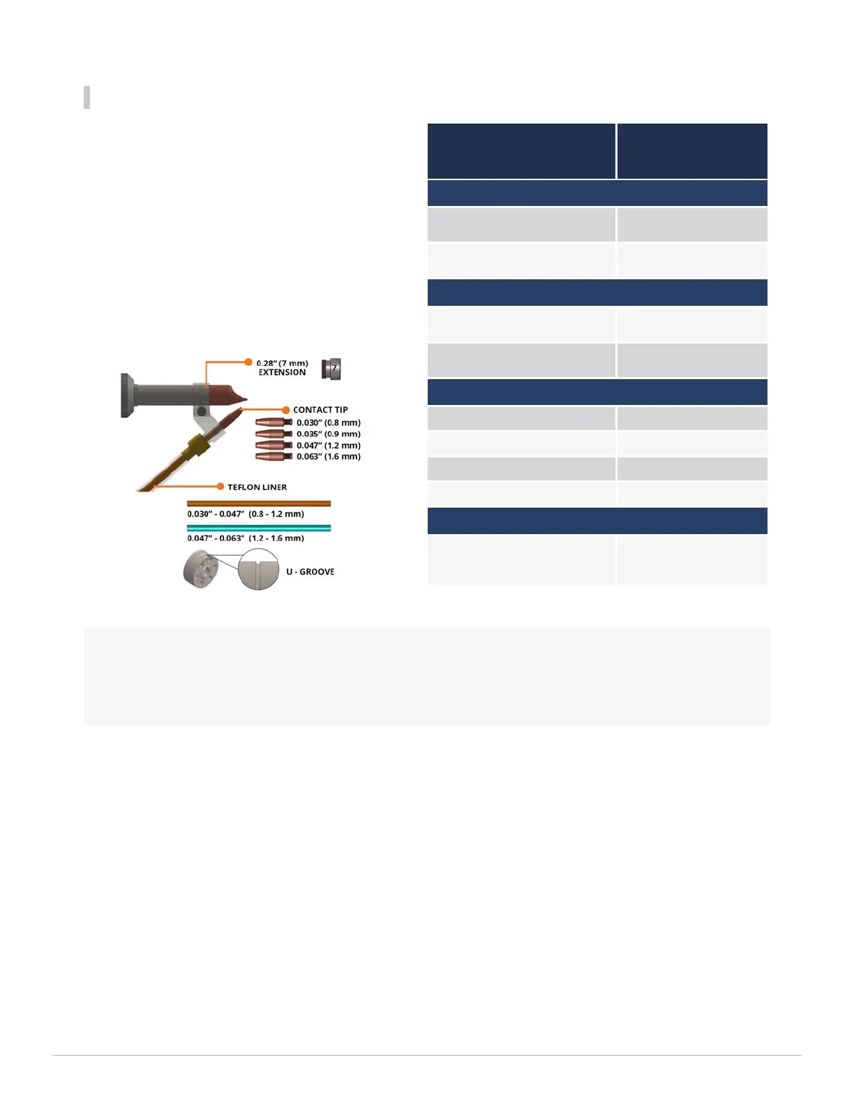 (1.2-1.6mm) U-Drive Roll, the orange 0.030”-0.047” (0.8-1.2mm) Liner, the 0.047" (1.2mm) Contact