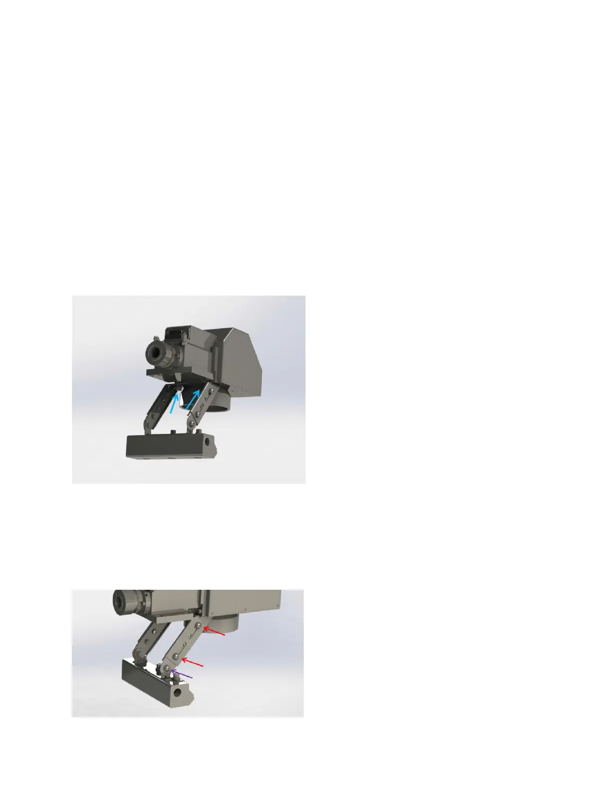 using two bolts (blue arrows in Figure 5-1). The air knife assembly can be mounted to face any