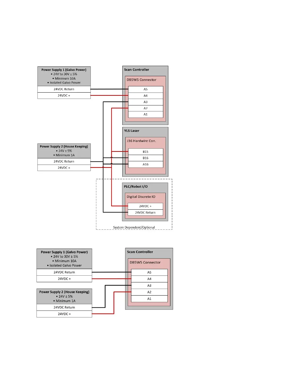 Please refer to the following figures for power supply configurations depending on the laser being used.