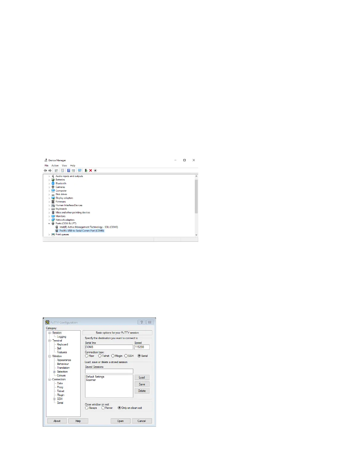 b. The following example (Figure A-1) shows that COM8 is the connection to the Scan