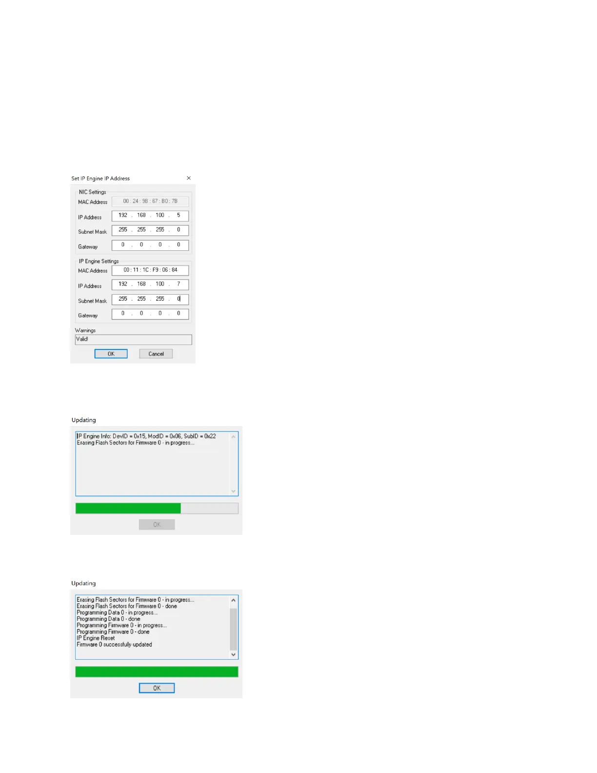 When a valid IP address is set, the user should see “Valid!” under the “Warnings” box.