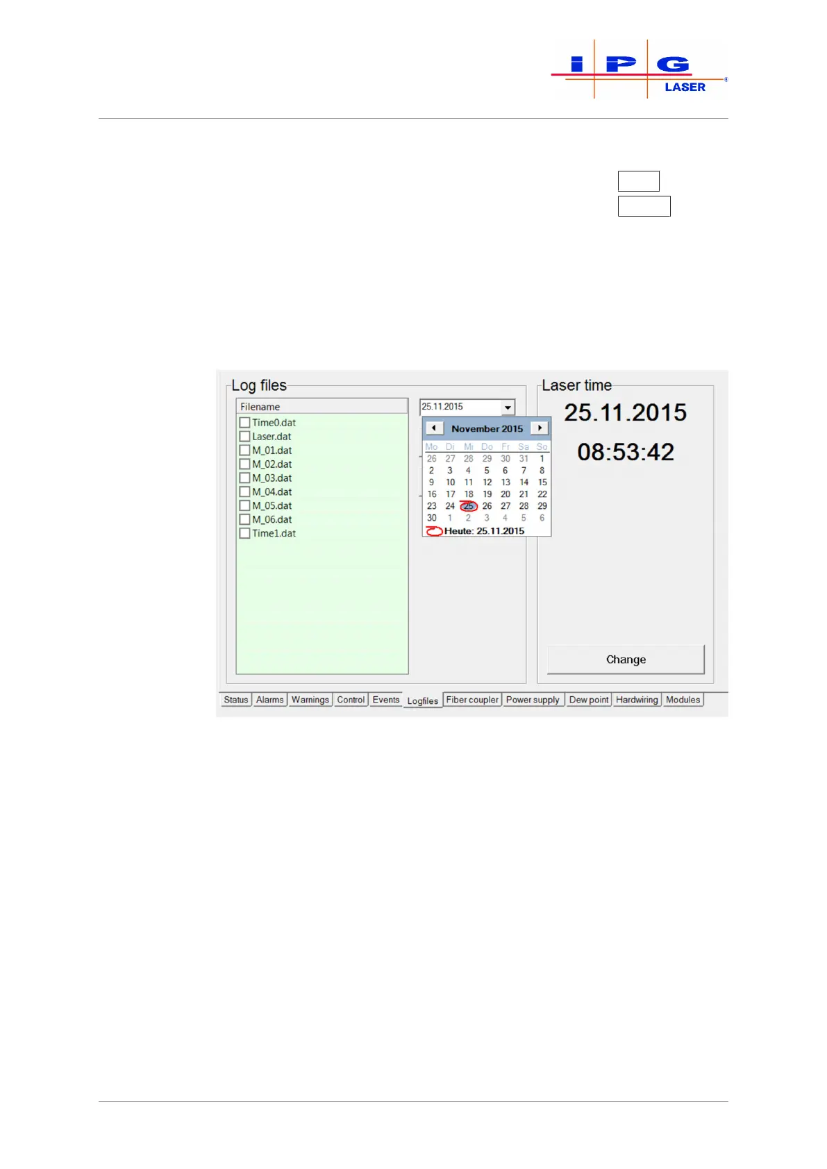date. If on the selected date the laser was not switched on, no log files were gen-