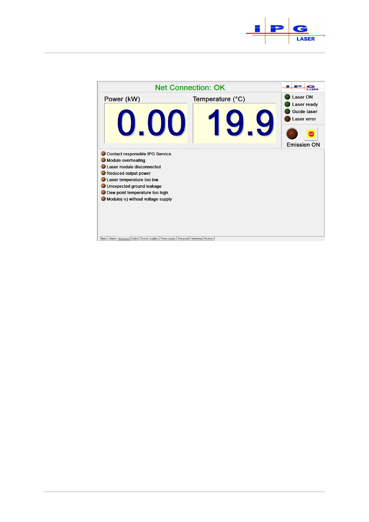 Warnings of the laser are displayed on this tab (see figure above). In
