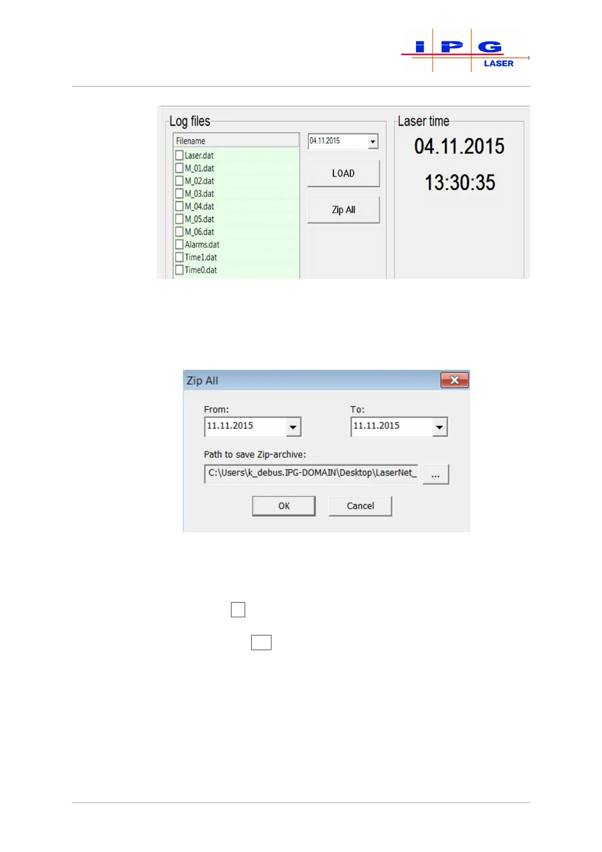 12. Send the downloaded log files by email to the competent IPG ser-