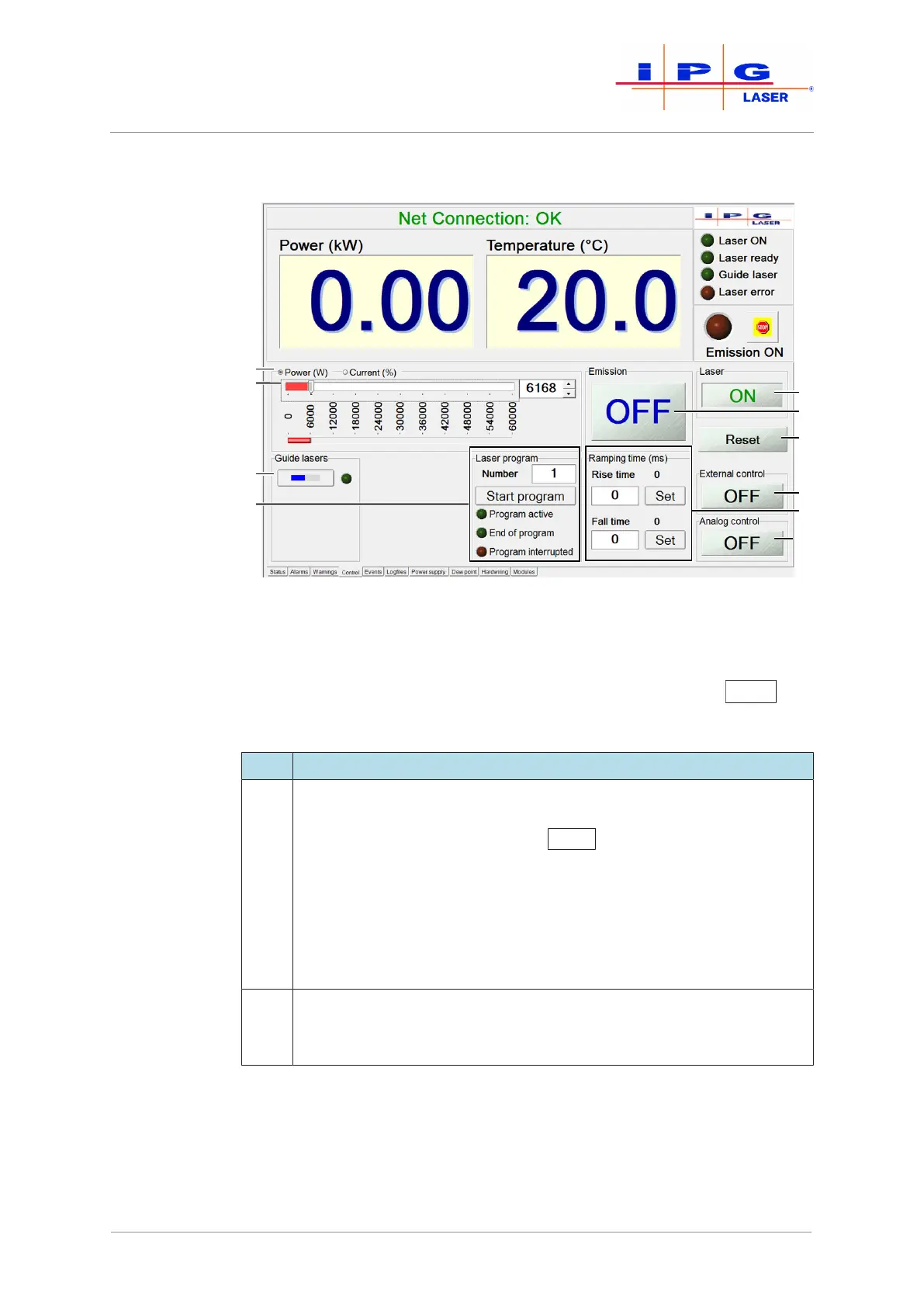 1-2 In this tab section, you can set the laser power with a slider or enter a