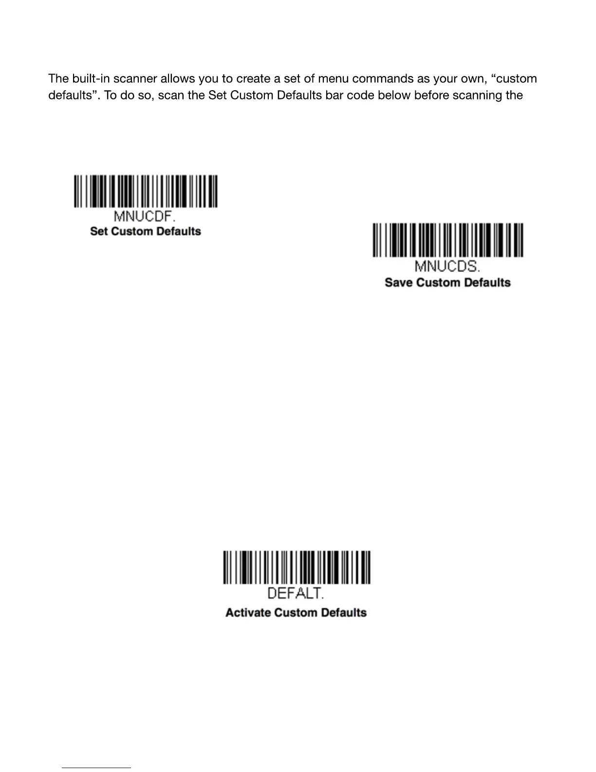 you want to save for your custom defaults, scan the Save Custom Defaults barcode.
