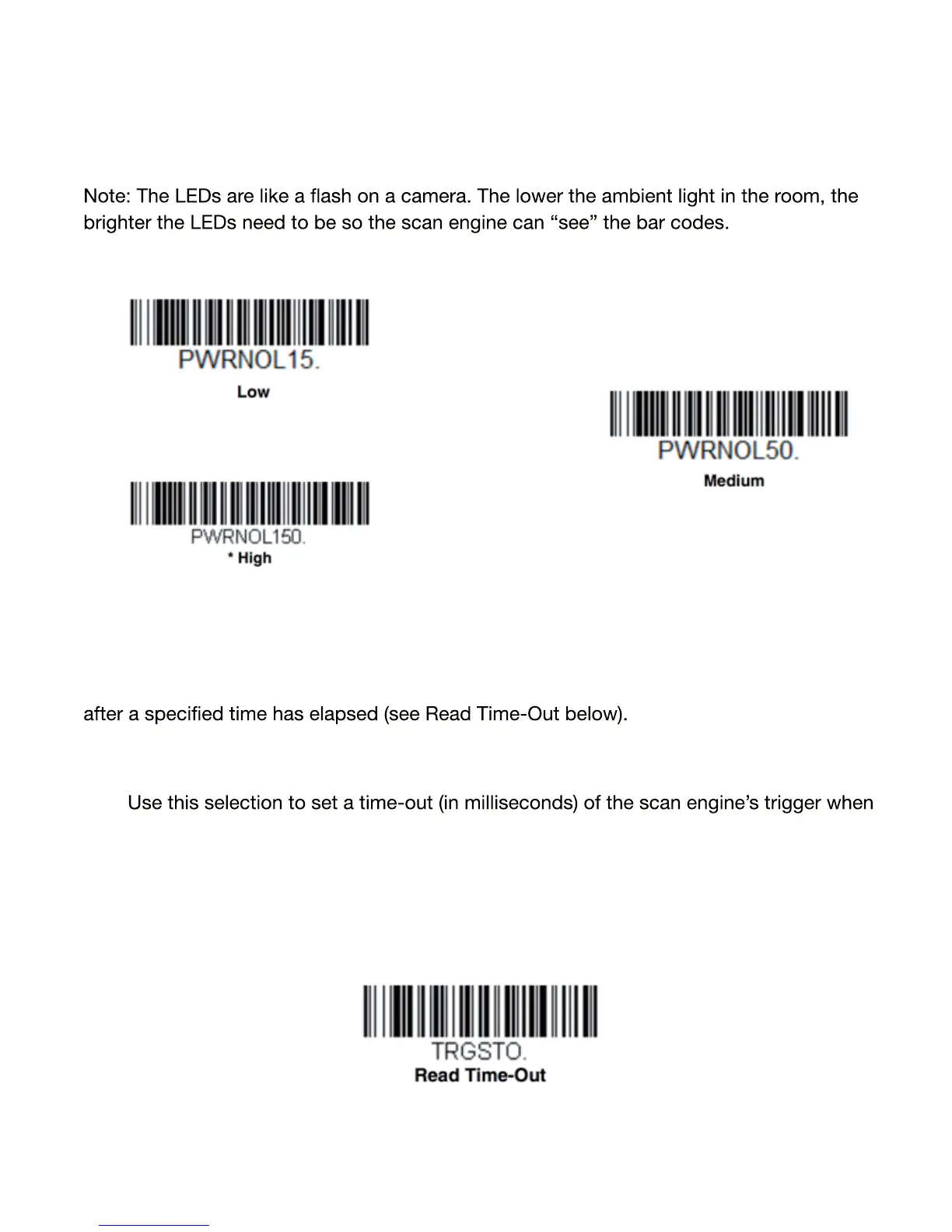 trigger command. After scanning the Read Time-Out barcode, set the time-out