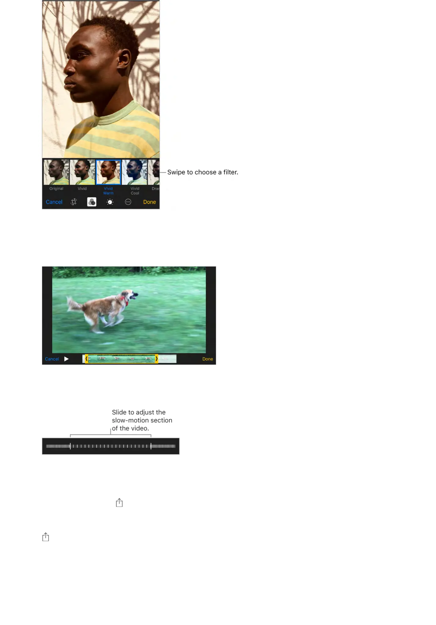 Set the slow-motion section of a video shot in Slo-mo. ?-;'XC!*Q'*#&%'6,&'*#&'A&0*!/-.