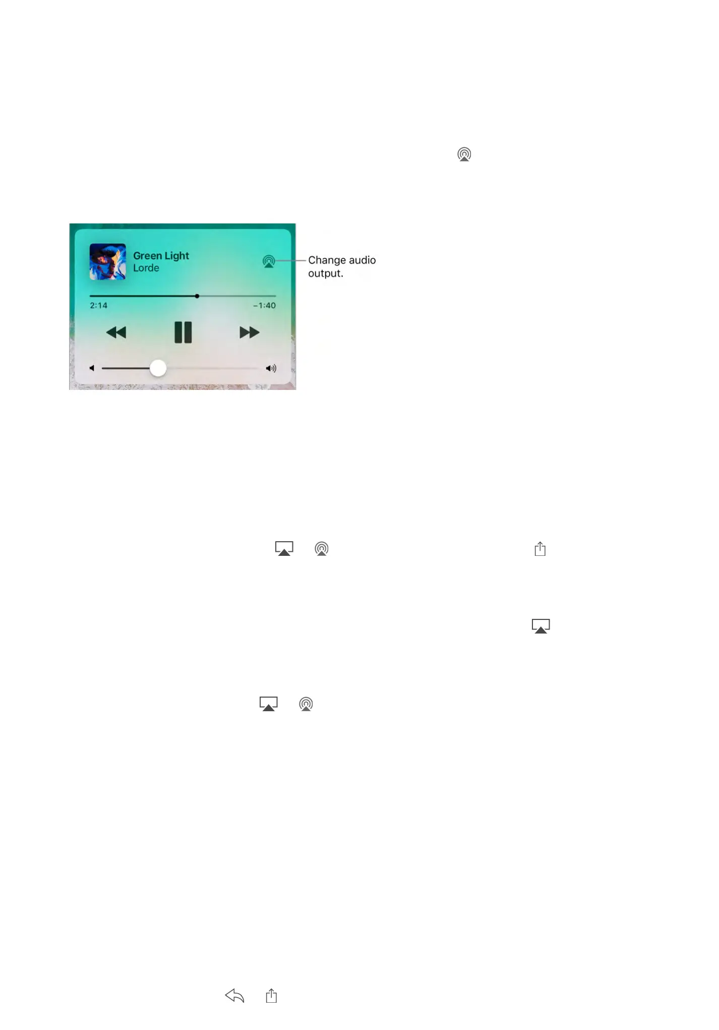 Stream audio to an Apple TV, AirPlay-enabled device, or connected Bluetooth