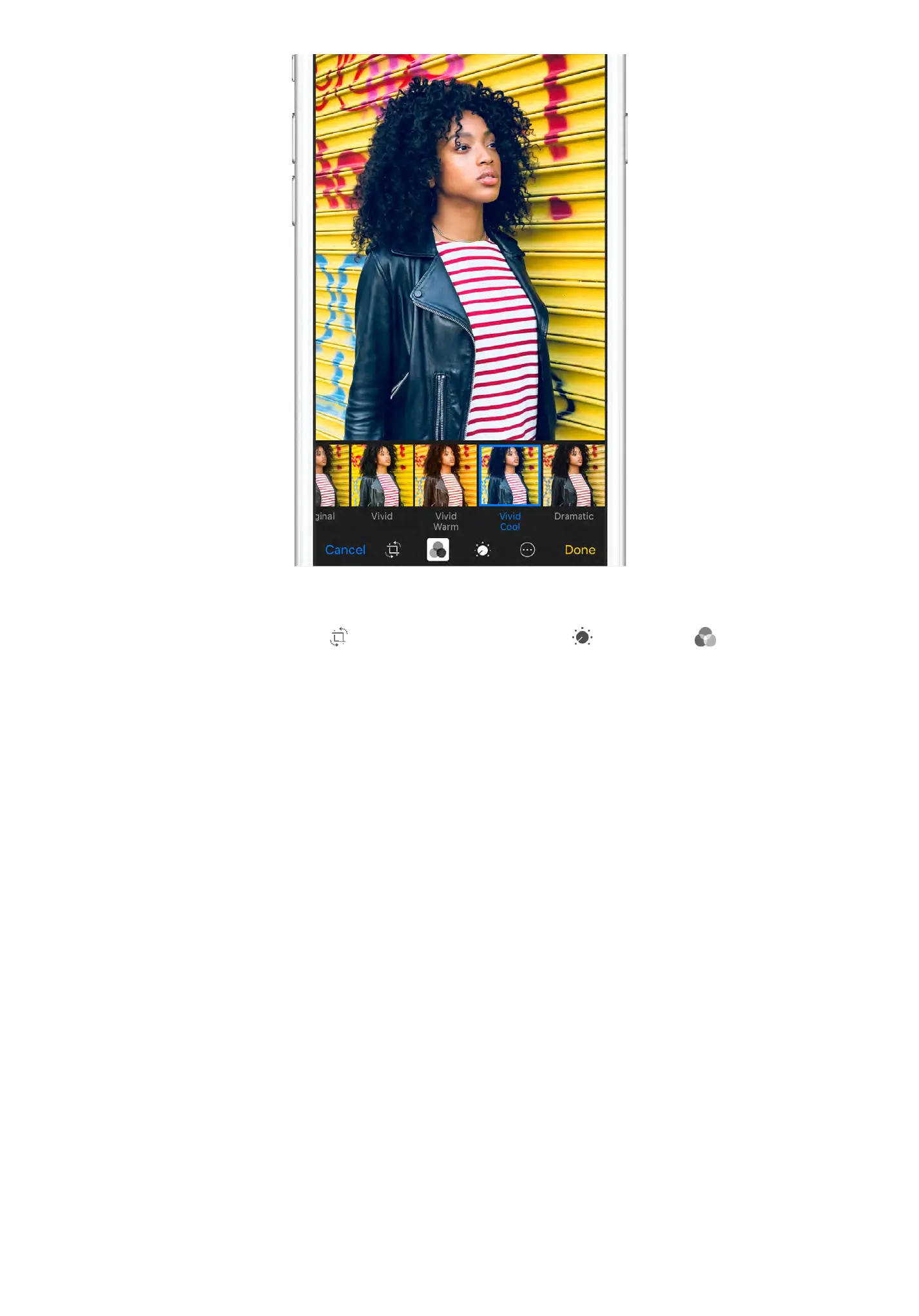 Tap Edit, then crop , adjust lighting and color , add filters ,