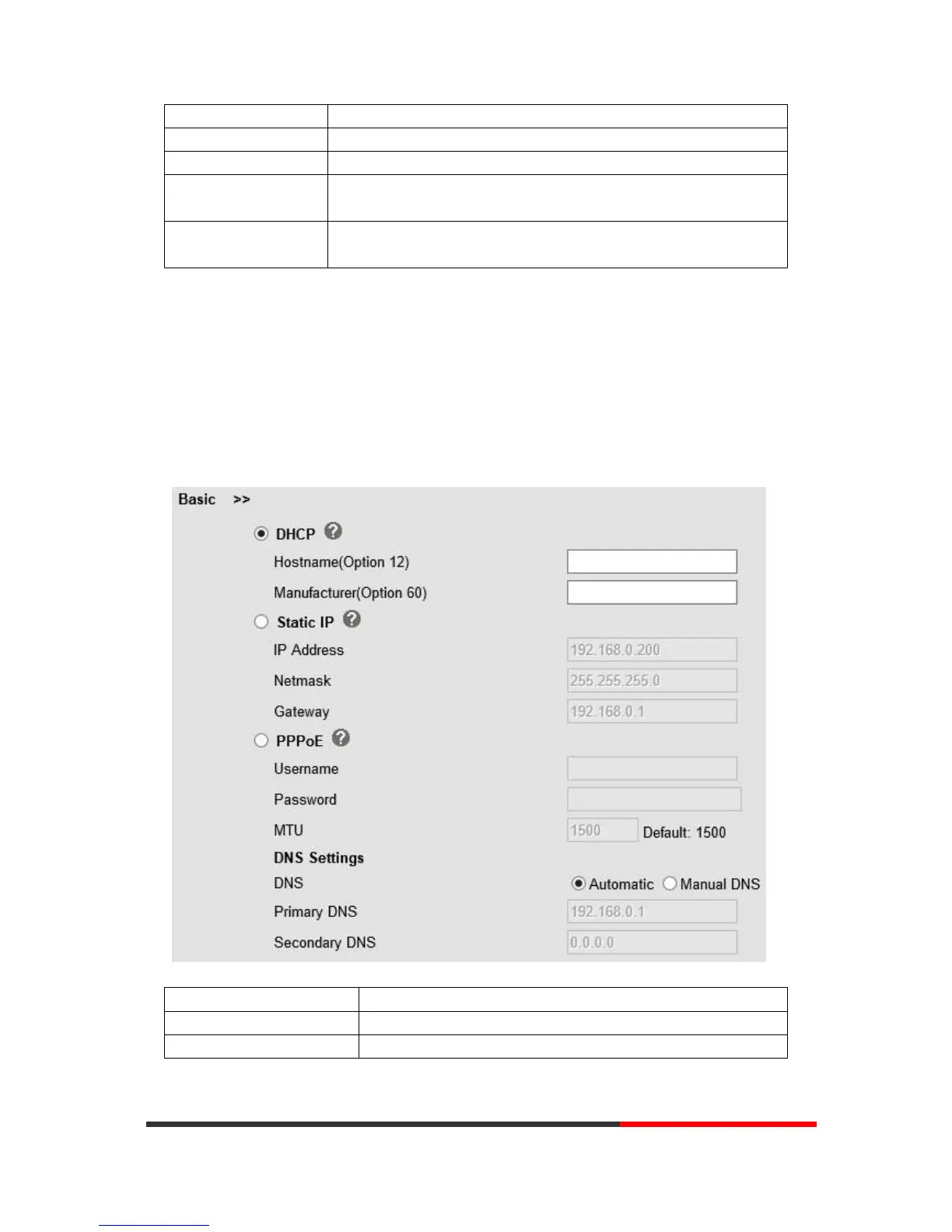 Network Connection Mode has DHCP, Static IP, PPPoE.
