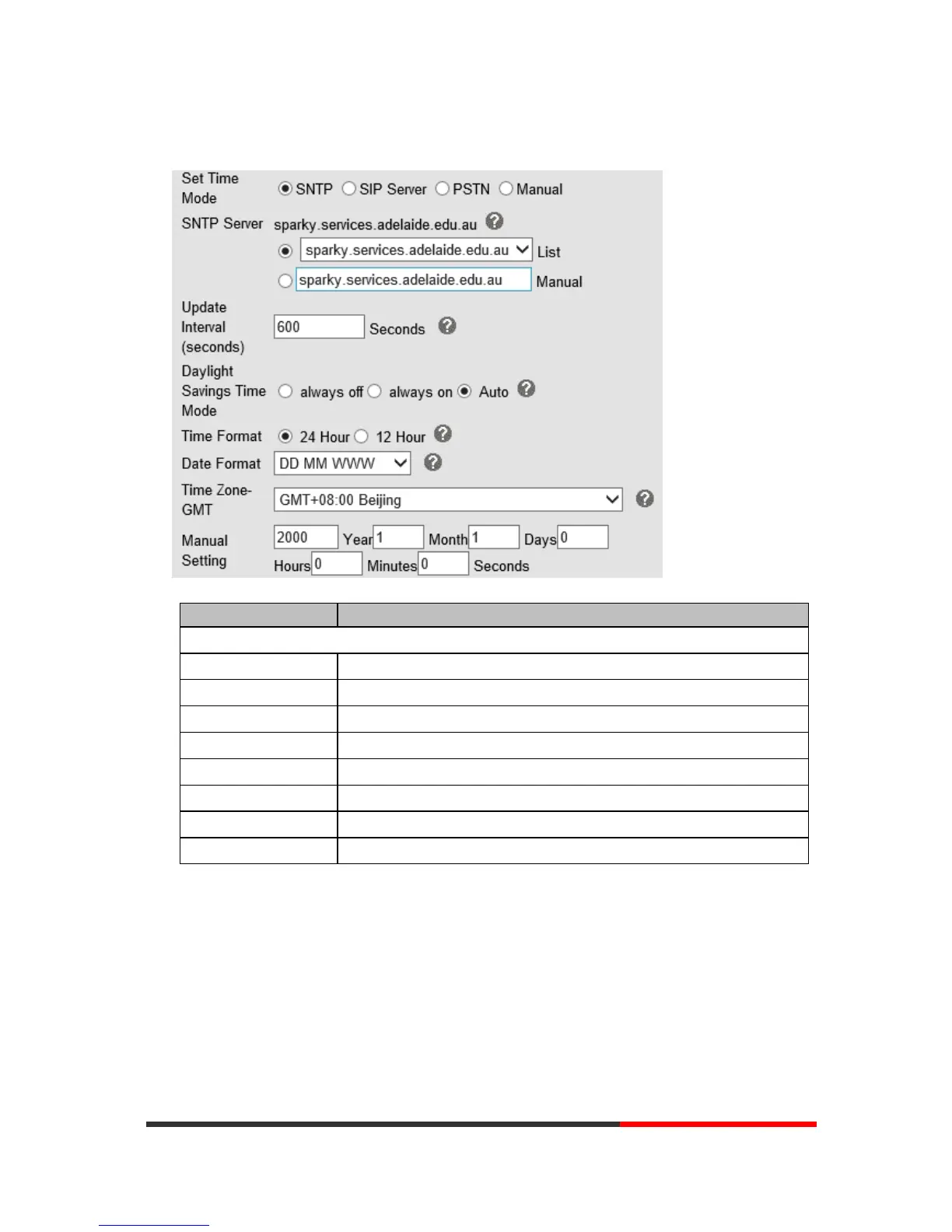 SNTP/SIP Server/PSTN/Manual