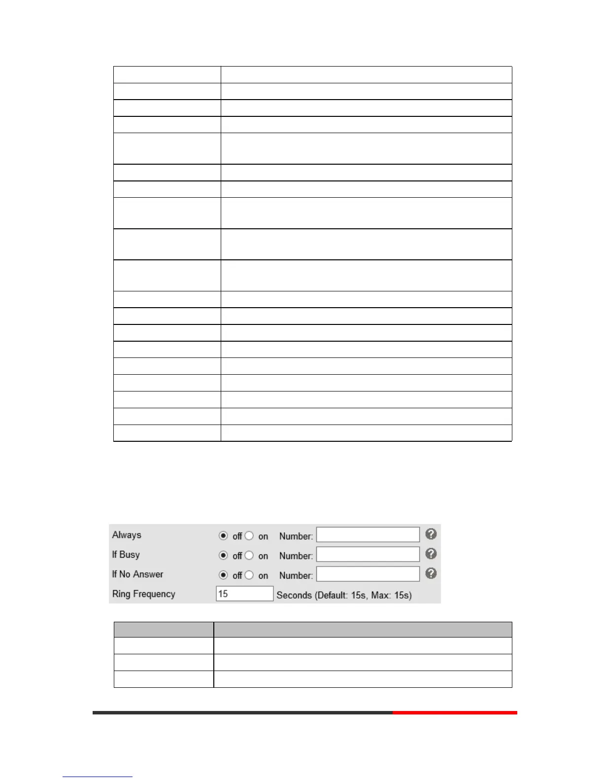 Called No Answer Time When it has coming call and enable this feature, the caller will be