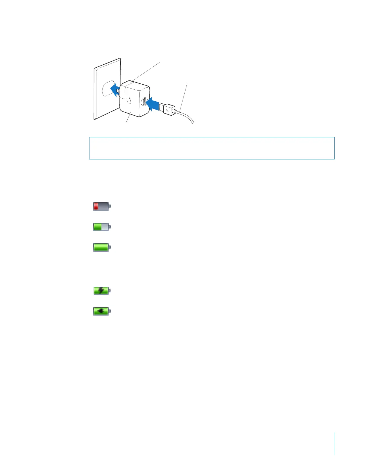 If iPod nano is connected to a power source, the battery icon changes to show that the