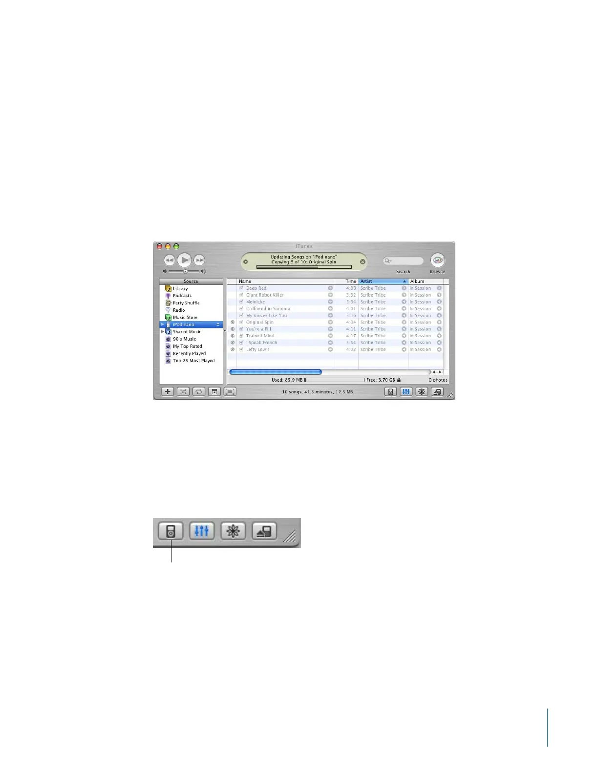 While music is being downloaded from your computer to iPod nano, the iTunes status