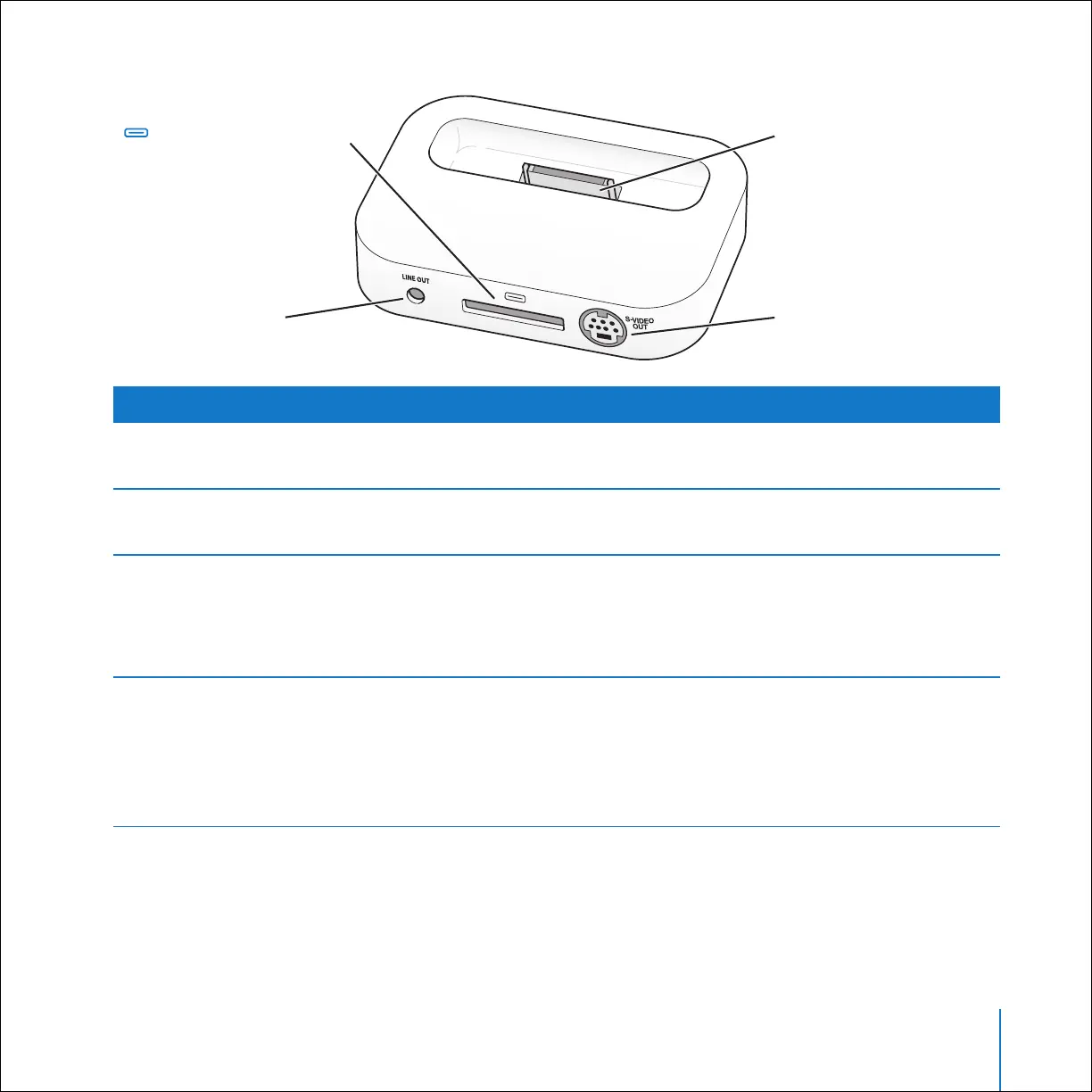 iPod connector Place iPod into the Dock to charge iPod, transfer