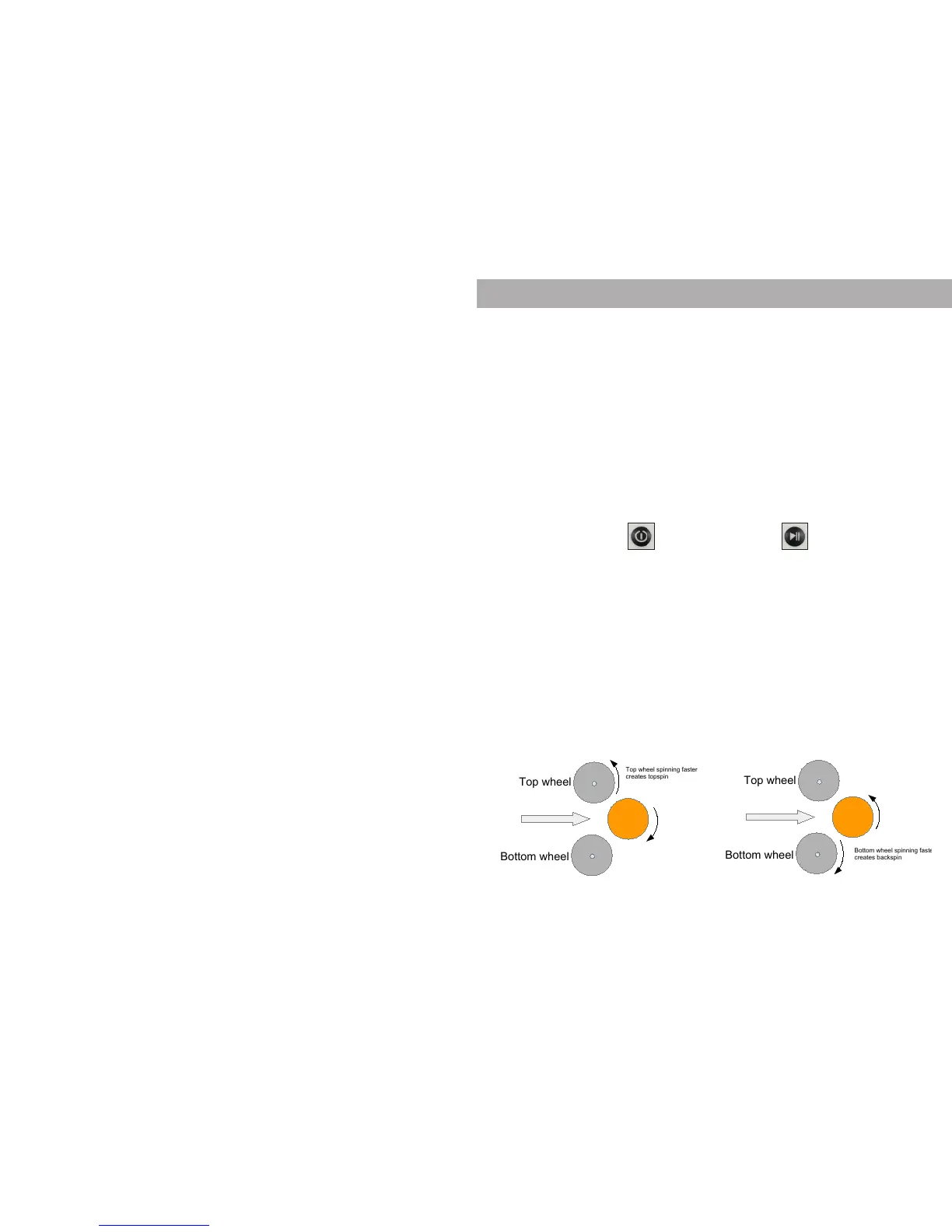 topspin is generated. When the lower wheel spins faster than the upper wheel,