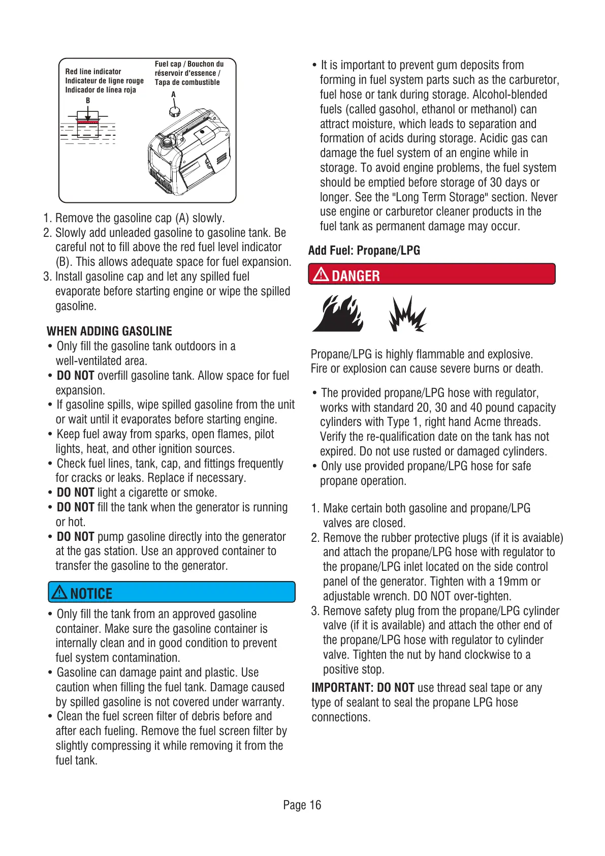 • DO NOT overfill gasoline tank. Allow space for fuel